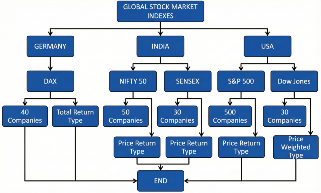 | Dow Jones | USA | 30 | Price Weighted |